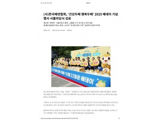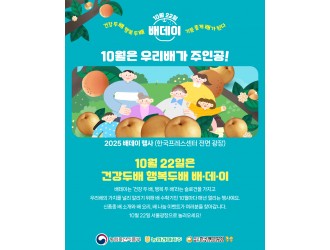 홈 홍보2배 배데이 배데이 2025 원예산업신문 [제 12회 배데이 행사 성료, … 출처 :제 12회 배데이 행사 성료, “건강 두배~ 행복 두배~” - 원예산업신문 조회 : 26 2025-11-05 2025 농민신문 [“배 드시고 건강·행복 두배 되세요… 출처 :“배 드시고 건강·행복 두배 되세요”…배데이 행사 성료 조회 : 17 2025-11-05 2025 팜&마켓 [사)한국배연합회 ‘2025 배데이’… 출처 :사)한국배연합회 ‘2025 배데이’ 소비자와 함께! 조회 : 17 2025-11-05 2025 국민일보 [한국배연합회 ‘2025 배데이 기념… 출처 :한국배연합회 ‘2025 배데이 기념행사’ 개최-국민일보 조회 : 20 2025-11-05 2025 서울경제 [(사)한국배연합회, ‘건강두배 행복… 출처 :(사)한국배연합회, ‘건강두배 행복두배’ 2025 배데이 기념행사 서울마당서 성료 | 서울경제 조회 : 19 2025-11-05 2025 LOCAL세계 [한국배연합회 2025 제12회… 출처 :로컬(LOCAL)세계 조회 : 28 2025-11-05 2025 배데이 기념행사 조회 : 26 2025-11-03 2025 배데이 팝업부스 조회 : 24 2025-10-31 2025년 제12회 배데이 행사 개최 안내 10월 22일은 배가 되는 날! 배데이▣ 행사일자 : 2025년 10월 22일(수)▣ 행사장소 : 서울마당(서울시 중구 세종대로 124)▣ 행사내용 :- 배데이 … 조회 : 73 2025-10-17 2025 원예산업신문 [배데이 행사 홍보] 출처 : 2025년 10월 3일 금요일 원예산업신문출처 : 2025년 10월 17일 금요일 원예산업신문 조회 : 43 2025-10-14 2025 농민신문 [배데이 행사 홍보] 출처 : 2025년 10월 13일 월요일 농민신문 조회 : 47 2025-10-14 10월 22일은 ‘배데이’…“아삭 달콤~ 배 먹으며 농… 출처 :10월 22일은 ‘배데이’…“아삭 달콤~ 배 먹으며 농가 응원해요” < 유통 < 기사본문 - 한국농어민신문 조회 : 222 2024-11-01 2024 농민신문 ["신품종 우리배 맛보세요"] 출처 :“신품종 우리배 맛보세요” 조회 : 189 2024-10-25 2024 원예산업신문 [제11회 배데이 행사 성공적 개… 출처 :제11회 배데이 행사 성공적 개최 - 원예산업신문 조회 : 199 2024-10-25 2024 팜앤마켓 ["건강두 배~ 행복두 배~ 우리배리… 출처 :“건강두 배~ 행복두 배~ 우리배리굿” 조회 : 191 2024-10-25 열린1페이지 2페이지 3페이지 맨끝